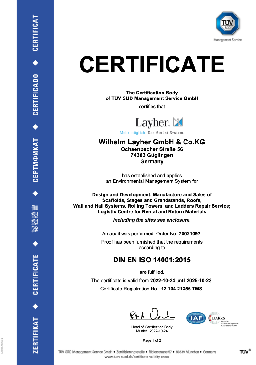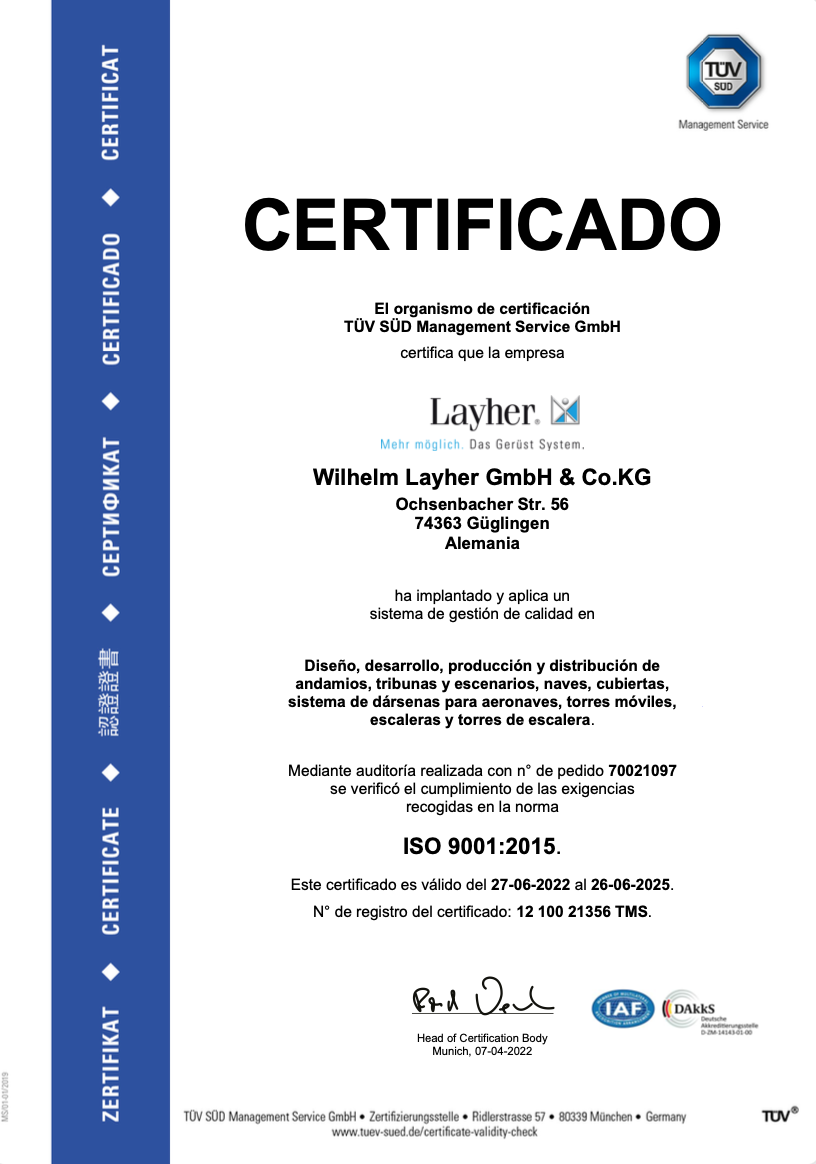 Somos el único proveedor en Guatemala que cuenta con documentación técnica firmada por Layher Alemania, asegurando equipos con calidad alemana, duraderos y certificados internacionalmente.